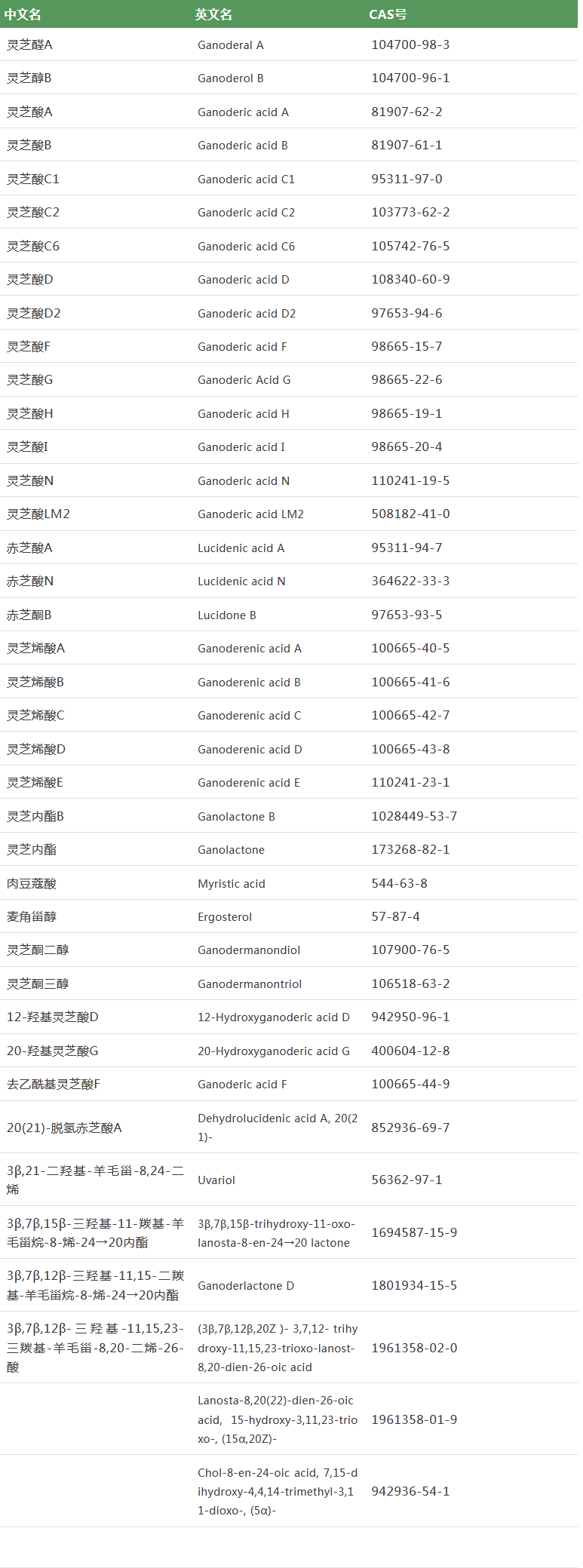 目前我司化合物库有多种灵芝活性成分,针对以下重点推荐的产品,普思生物均现货供应,当天发货。