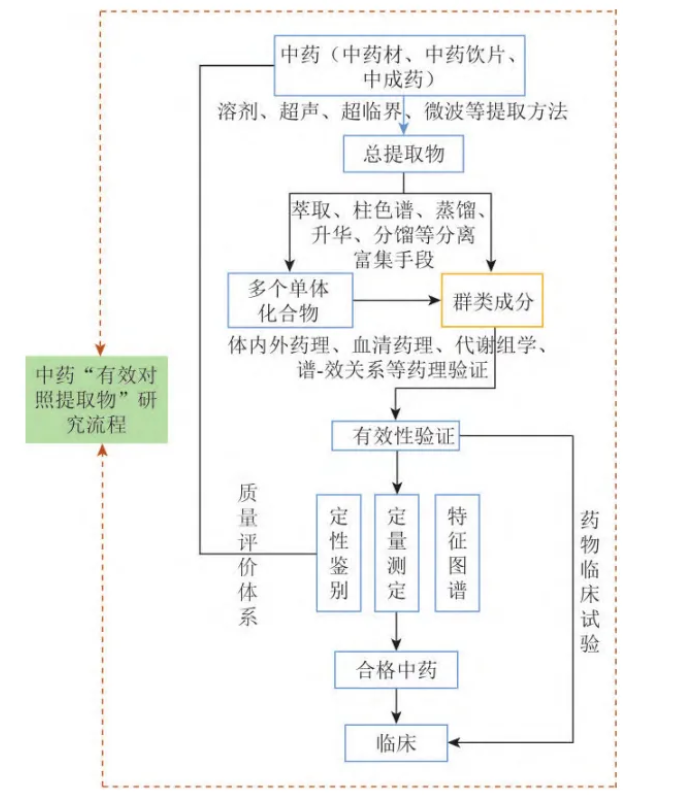 1、中药“有效对照提取物”研究流程