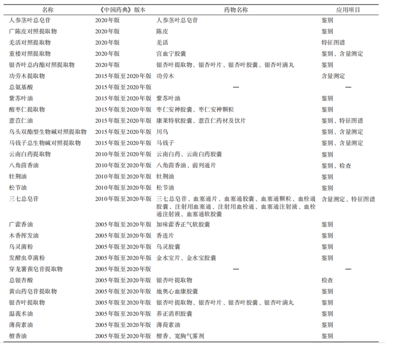 《中国药典》2020年版将对照提取物定义为经特定提取工艺制备的含有多种主要有效成分或指标性成分,用于中药材 (含饮片)、提取物、中成药等鉴别或含量测定的国家药品标准物质,丰富了对照提取物的内涵,增强对照提取物应用于中药质量标准的科学性。