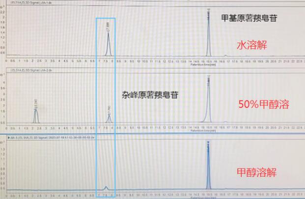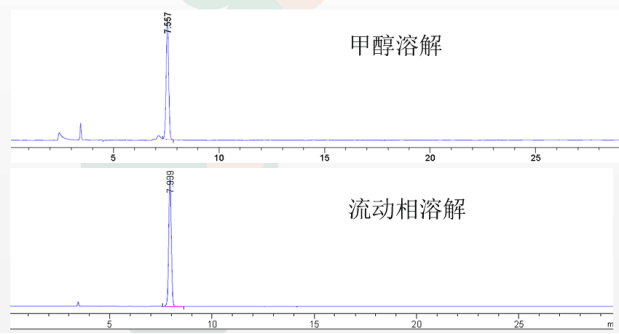原因:部分对照品在当前溶剂下溶解性较差,在溶解时对照品或其杂质溶解不充分,从而导致纯度异常。