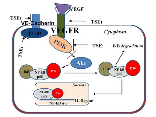 3、抗血管生成:茶皂素E1通过抑制VEGF受体复合物和NF-κB激活,抑制血管内皮细胞的管状结构形成,展示出抗血管生成作用,对于抑制肿瘤生长和转移具有重要意义。