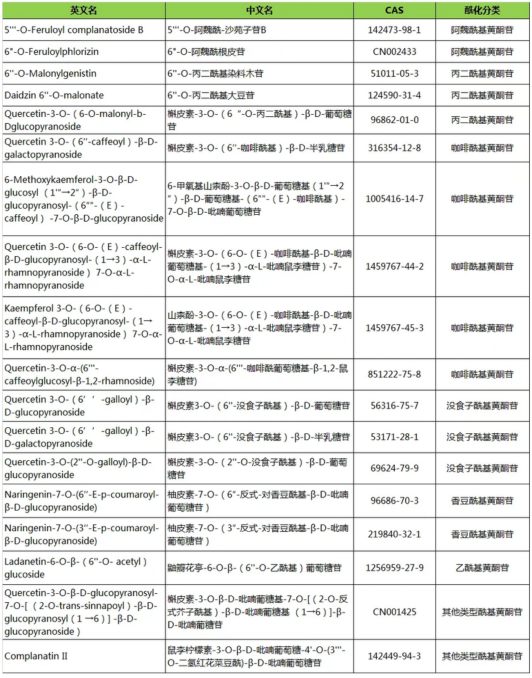 普思生物提供以下酰化黄酮糖苷对照品现货: