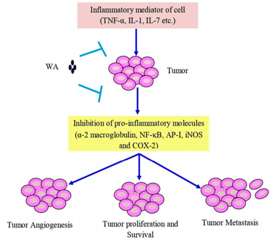 图2 醉茄素A对肿瘤抑制的作用机制及信号通路[2]