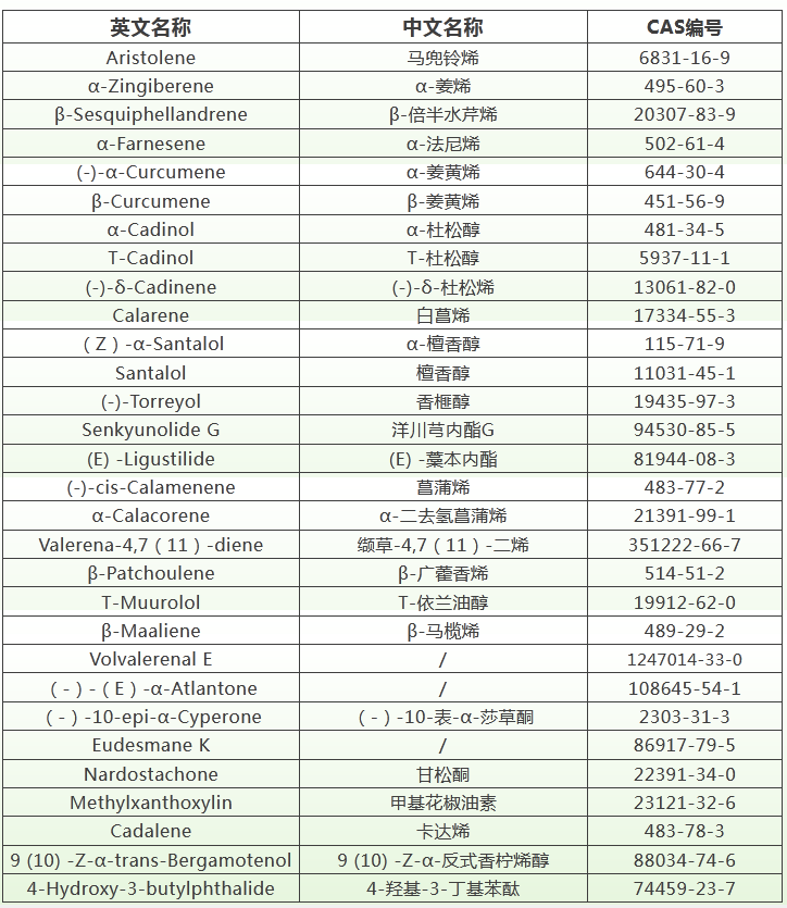 用途:沉香、广藿香、黄芩、川木香等多种植物的主要挥发性成分,具有显著的抗氧化、抗炎和抗肿瘤等活性
