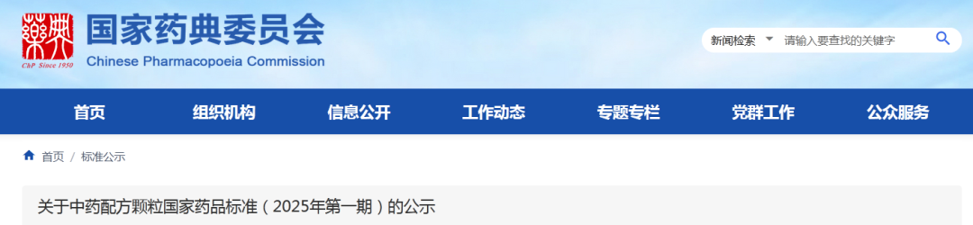 关于中药配方颗粒国家药品标准(2025年第一期)的公示(附普思相关对照品清单)