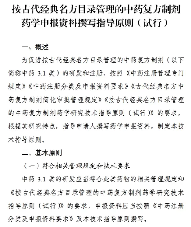国家药监局药审中心关于发布《按古代经典名方目录管理的中药复方制剂药学申报资料撰写指导原则(试行)》的通告