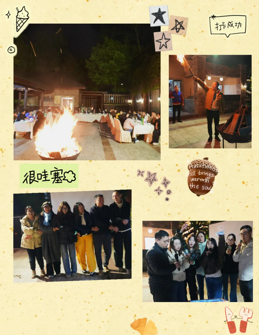 夜幕低垂,繁星缀满天空,红枫岭的篝火晚会悄然拉开帷幕!熊熊燃烧的篝火映照着每一张洋溢着笑容的脸庞,不仅驱散了秋夜的丝丝寒意,也点燃了每一位普思人心中的热情与活力。大家围炉共话、载歌载舞,在温暖氛围中拉近了彼此的距离。
