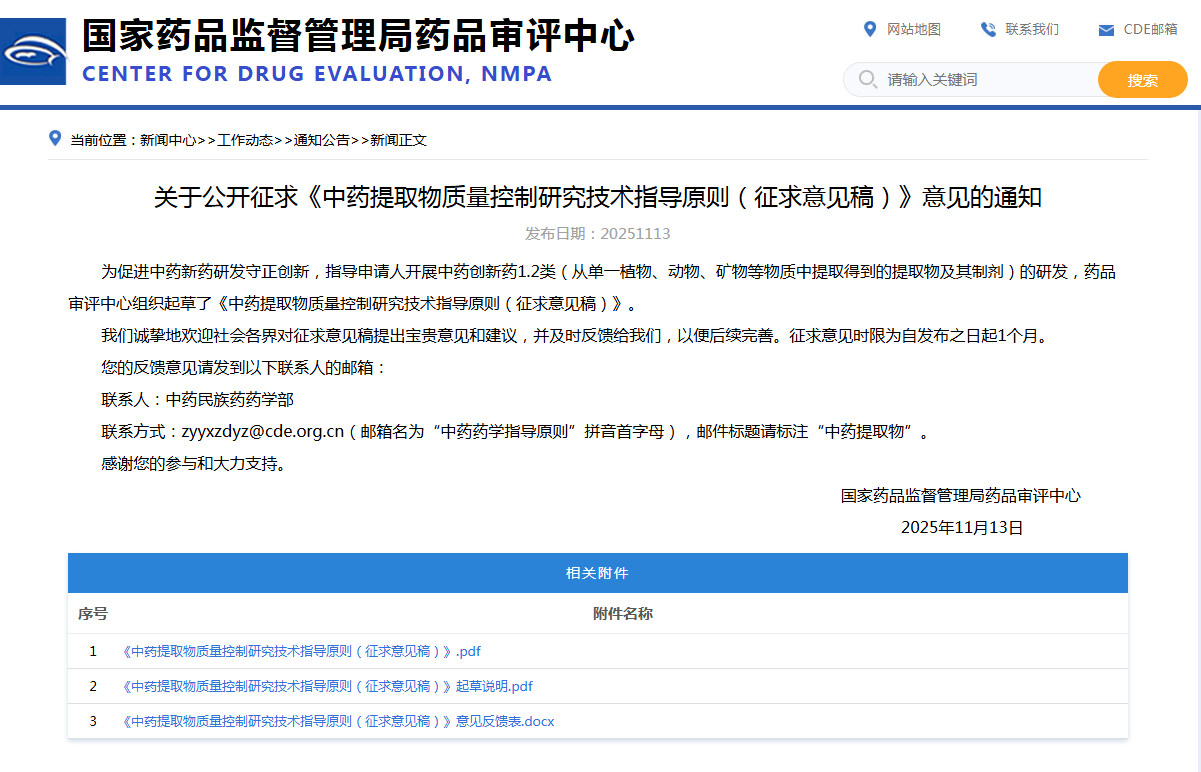 新指导原则征求意见|CDE最新发布《中药提取物质量控制研究技术指导原则(征求意见稿)》