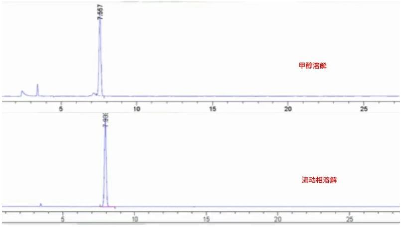 解决方案:通过对比对照品溶液放置前后的峰面积和峰形变化判断对照品溶液的稳定性,若确定为不稳定,则需现配现测,或更换溶剂,规避不稳定性因素。