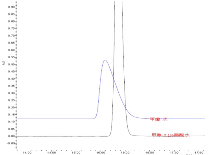 原因:当pH值不适当时,对照品与固定相的相互作用不均匀,导致部分分子提前或延迟流出,形成前沿峰或拖尾峰。