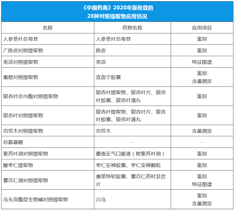 随着近年来研究的发展和增多以及中药配方颗粒的广泛使用,现在有越来越多的中药品种开始使用对照提取物,目前《中国药典》2020年版已经收载使用28种对照提取物,部分省市的中药配方颗粒标准也有不少品种开始使用相应的对照提取物,使中药材(饮片)及其复方的质量控制更符合中医药理论,也完善了其质量控制评价体系。