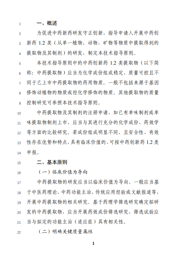 为促进中药新药研发守正创新,指导申请人开展中药创新药1.2类(从单一植物、动物、矿物等物质中提取得到的提取物及其制剂)的研发,药品审评中心组织起草了《中药提取物质量控制研究技术指导原则(征求意见稿)》。